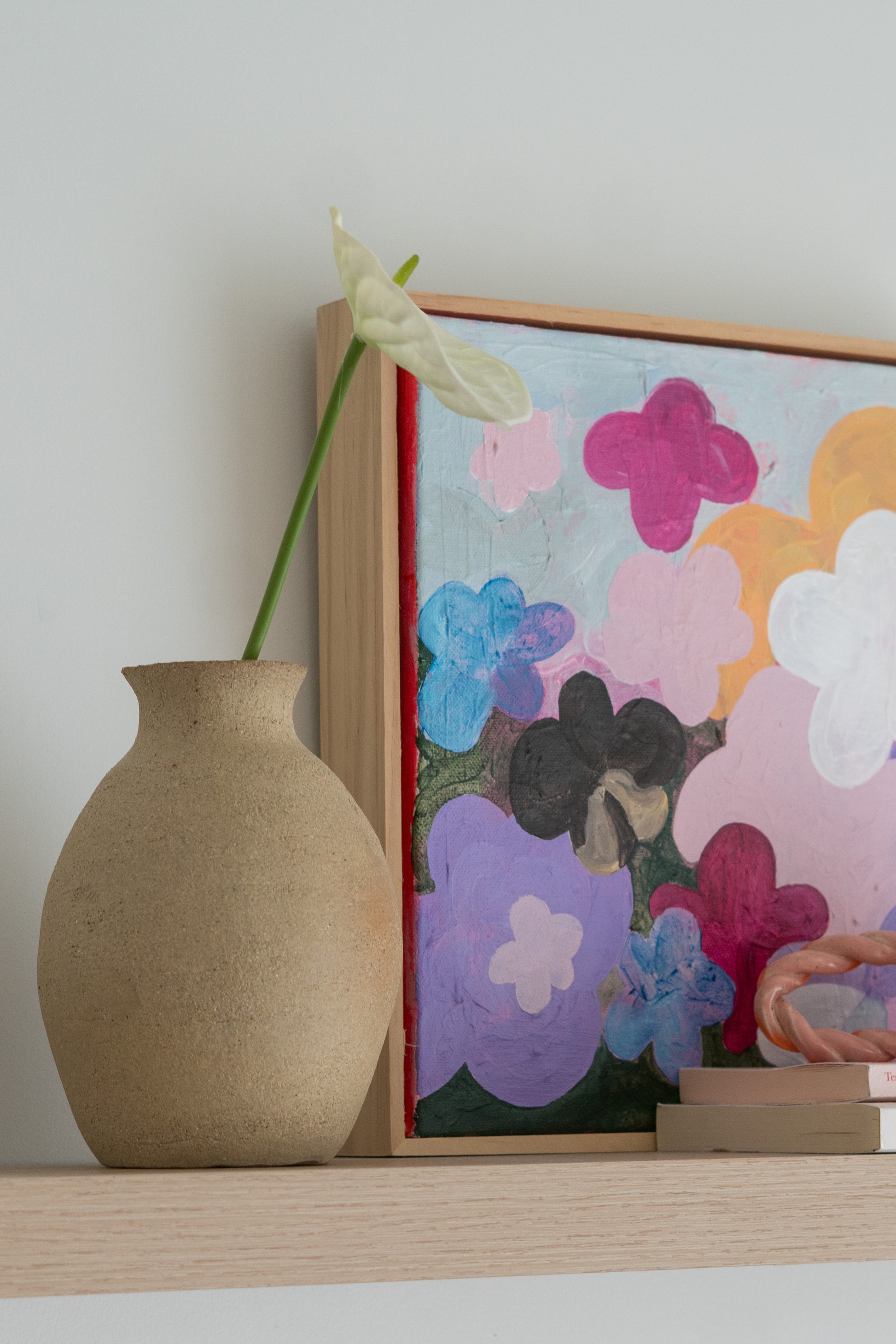 A beautiful vessel that has been glazed on the inside to hold your favourite blooms. The exterior has been left raw to draw attention to the organic tone and text of the clay.